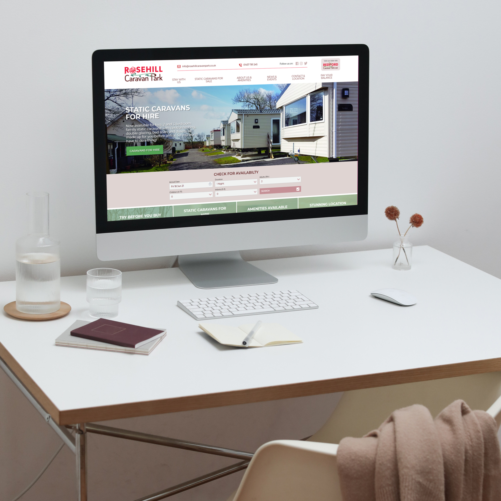 Long-standing customers Rosehill Caravan Park approached our website designers to build them a set of two new websites. We were to design one for Rosehill and another for their sister site, Redford Caravan Park.