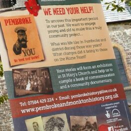 Following on from this theme it was decided to incorporate original photos of Pembroke men who served in the First World War, along with the iconic Field Marshal Kitchener recruitment poster on the roller banner. This was to try and bring it home to the people of Pembroke that these were real people from the town who volunteered to defend freedom against the crypto fascist Imperial German Empire. The only modern photos and graphics used on the roller banner were designed to reinforce the impact of the the historical images.