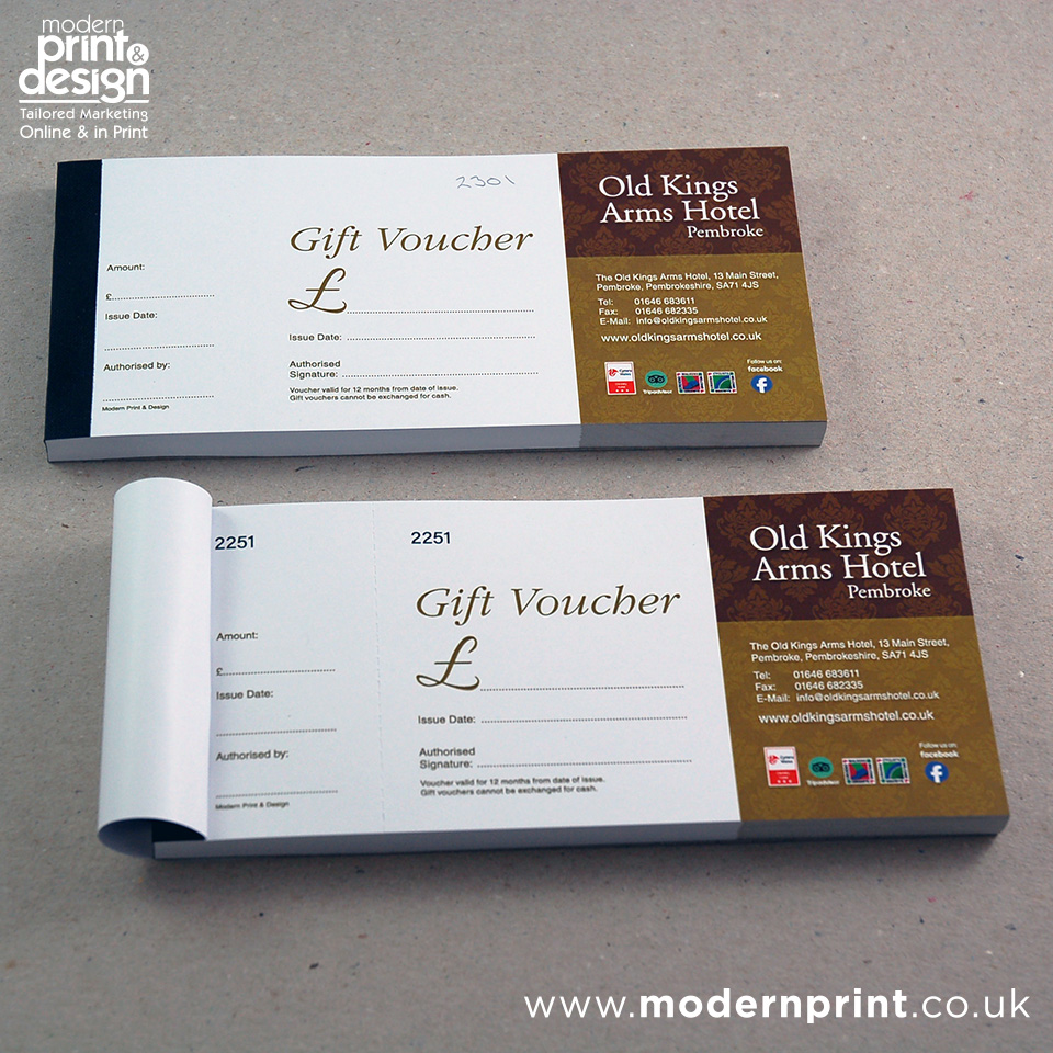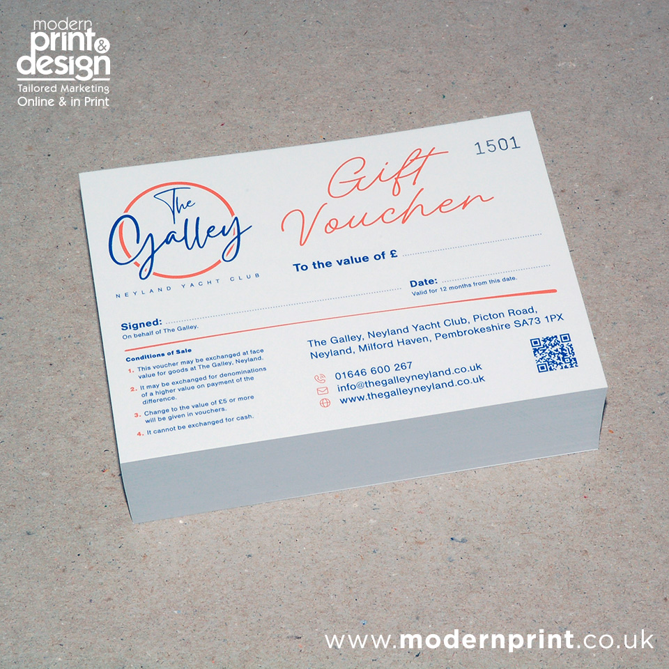 Vouchers Printers in Pembrokeshire. Call Modern Print & Design for printers in Pembrokeshire.