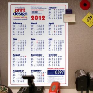 The A3 ( 297 X 420mm ) calendar is printed on strong 300gsm gloss art card and shows the whole year on one side, making it perfect next to your phone in the office or on a kitchen wall. 2500 have been printed, nearly all of which will be given away. Please call in for yours today.