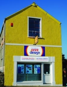 Pembrokeshires Modern Print and Design have just had two new Aluminum composite signs fitted to the front of their studio in Pembroke Dock. The signs were designed by senior graphic designer Leo Ayres, as part of their corporate re branding.